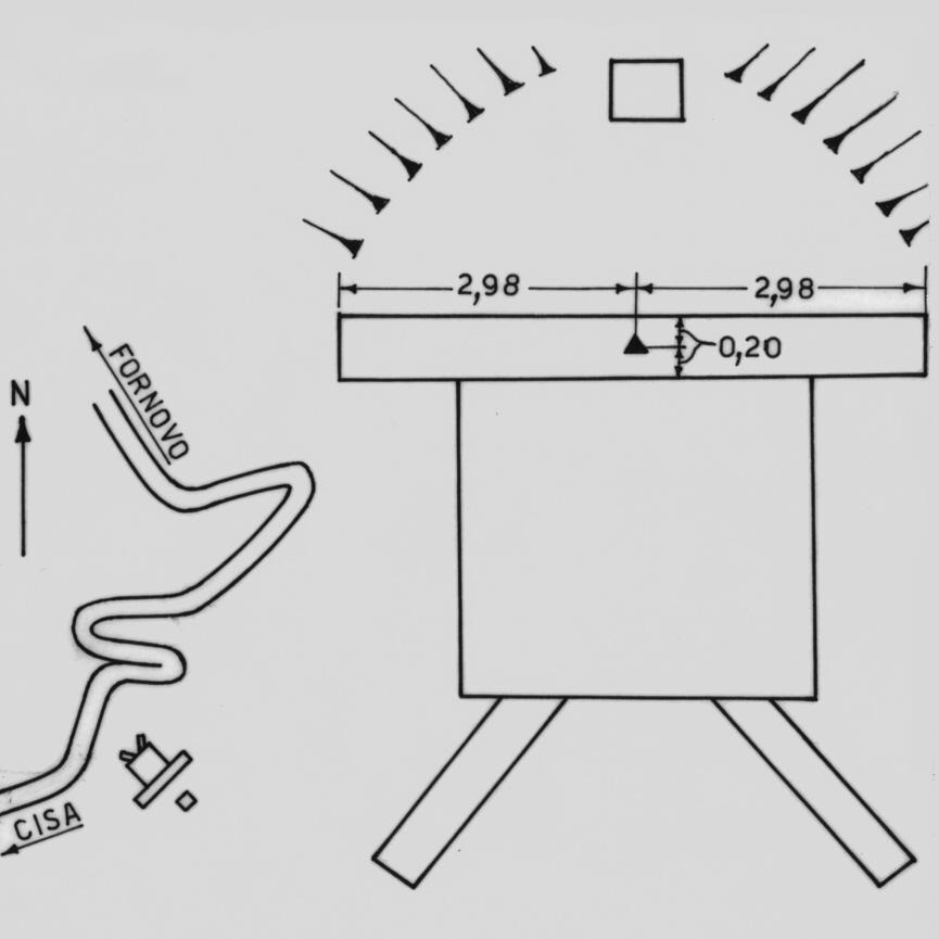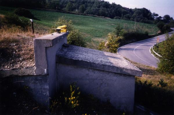 | materializzazione | Centrino del tipo "GPS C" fissato in corrispondenza del centro geometrico del cordolo in cemento alla sommità del serbatoio dell'acquedotto esistente sul rilevato ad est della S.S. 62 "della Cisa" in prossimità del km 88+200. |