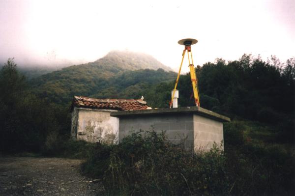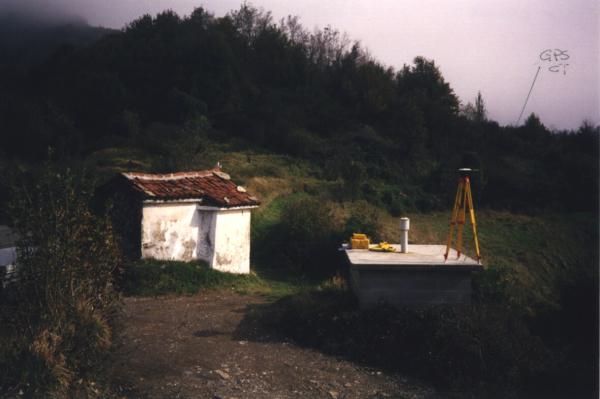 Centrino di tipo "GPS C" fissato sulla soletta di copertura di un serbatoio dell'acqua in prossimità dello spigolo sud-ovest.