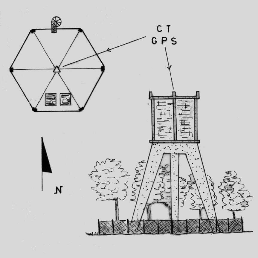 Centrino di tipo "GPS C" fissato sulla soletta di copertura di un serbatoio idrico in asse allo stesso, sul poggio a est di Cimaferle.