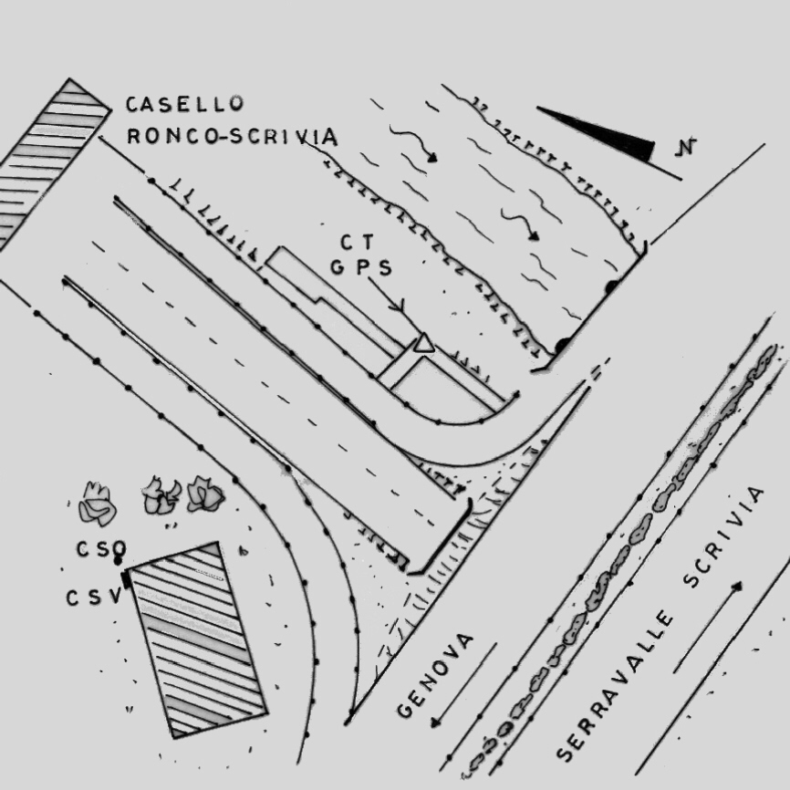 | materializzazione | Centrino di tipo "GPS C" fissato alla sommità del muro a retta costituente il ponte all'uscita dell'autostrada A7 per Ronco Scrivia in direzione Genova. |