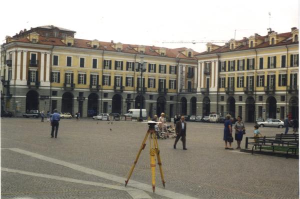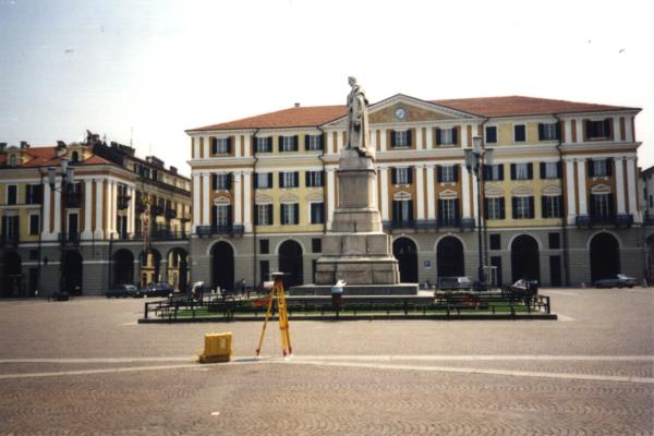 Centrino di tipo "GPS C" infisso nel centro di una pietra che fa parte della cornice del rombo nella pavimentazione della piazza, ad ovest del monumento.