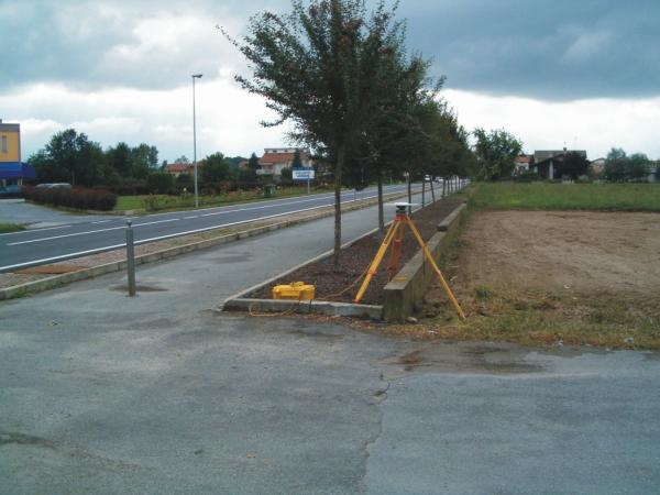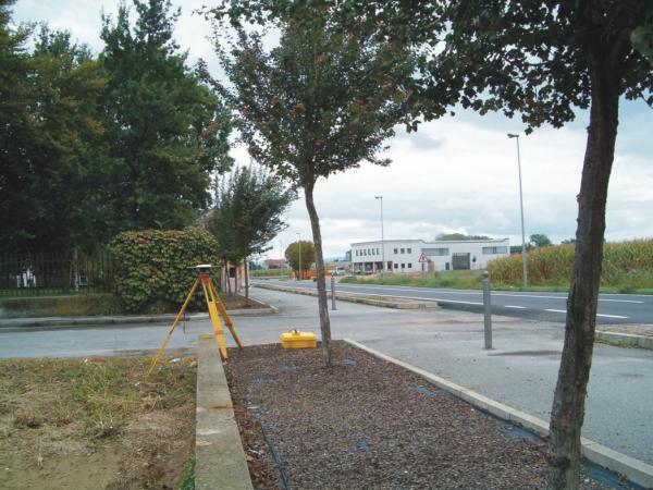 Centrino del tipo "GPS C" infisso in prossimità del termine di un cordolo in cemento armato esistente a margine della carreggiata a delimitazione della pista ciclabile ed il terreno coltivato adiacente.