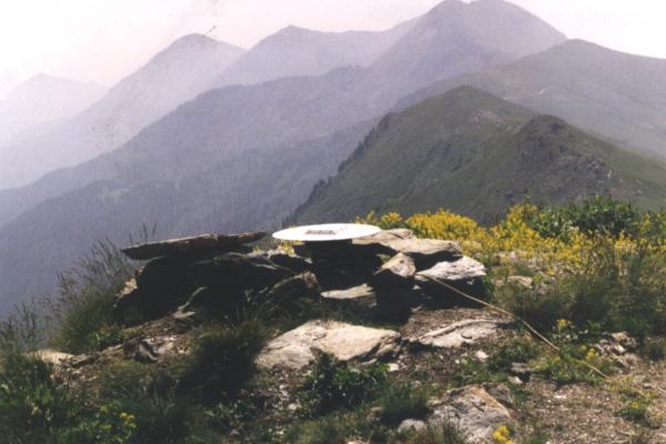| materializzazione | Centrino del tipo "GPS A" fissato su centrino IGM del tipo di superficie in blocchetto prefabbricato di conglomerato cementizio e sottostante centrino di fondo coassiale. Riferimenti: R1 (centrino di fondo rovesciato e cementato su roccia); R2, R3 (centrini metallici cementati su roccia). |