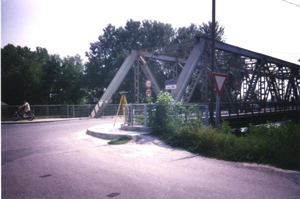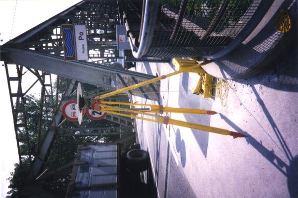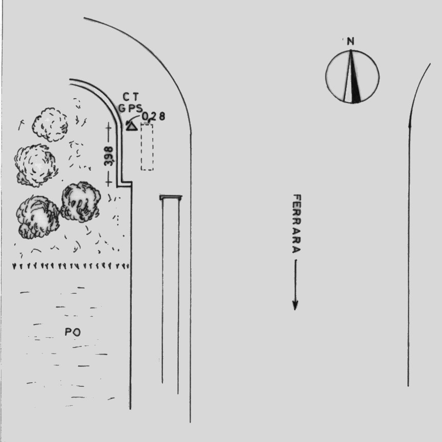 Centrino del tipo "GPS C" infisso nel marciapiede in cemento del ponte sul Fiume Po, nei pressi dell'estremo a nord, lato ovest.