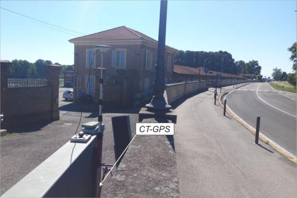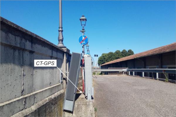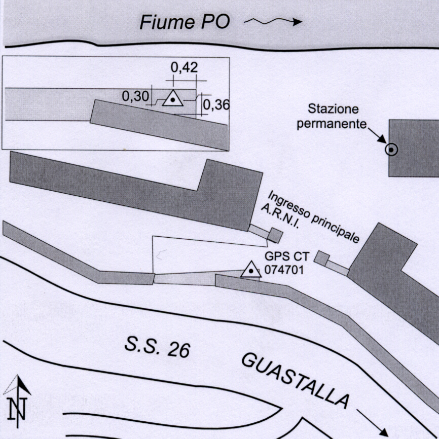 Centrino in acciaio inox del tipo "GPS C" infisso nella fondazione del muro esistente lungo il lato nord della S.S.26 di fronte all'ingresso principale del complesso degli edifici dell'azienda A.R.N.I.