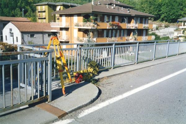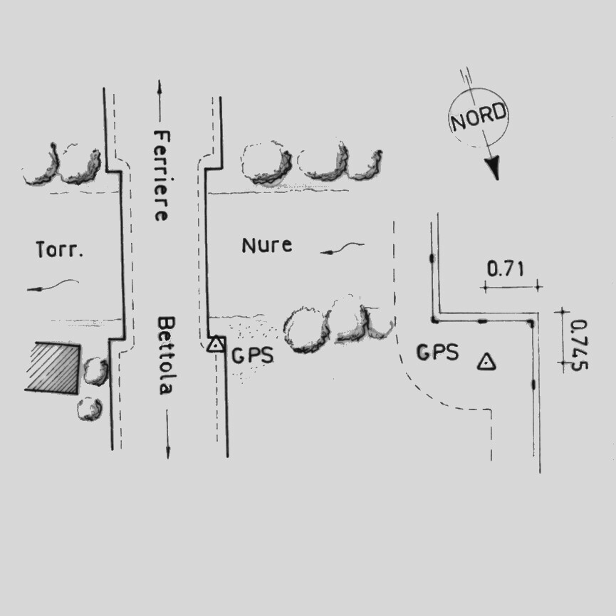 Centrino del tipo "GPS C" fissato in corrispondenza della risega del marciapiede della spalletta a monte, all'estremo nord del ponte sul Torrente Nure.