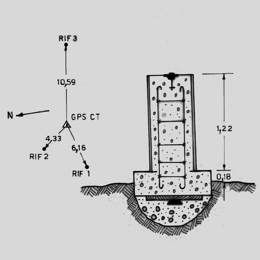 | materializzazione | Centrino di tipo "GPS A" fissato su un centrino di superficie alla sommità di un pilastrino in cemento armato a sezione circolare sito alla sommità del monte. |