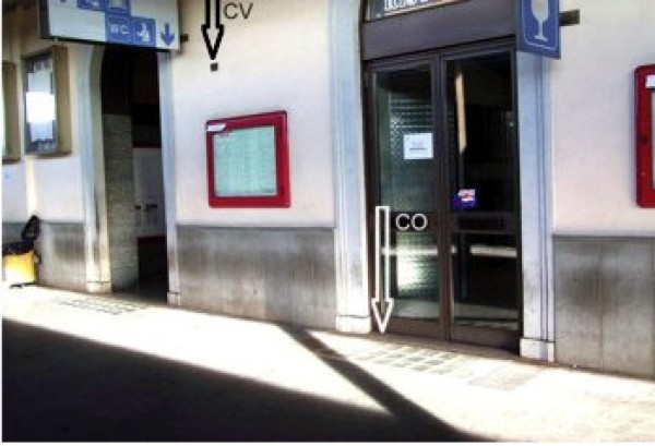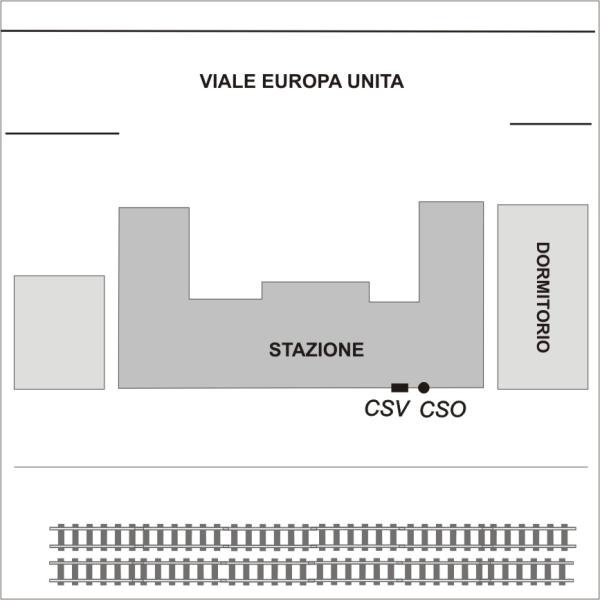[{"simbolo_contrassegno":"B3","materializzazione":"(CSO') – A sinistra della soglia di ingresso veicolisti, alla destra del csv ."},{"simbolo_contrassegno":"V3","materializzazione":"(CSV') – Sulla facciata, dalla parte dei binari, a destra dell'ingresso ai binari ."}]