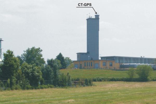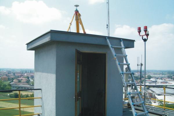 | materializzazione | Centrino del tipo "GPS C" fissato alla sommità della terrazza di copertura della torretta più alta del serbatorio idrico in cemento armato e coincidente con l'asse geometrico della stessa. |