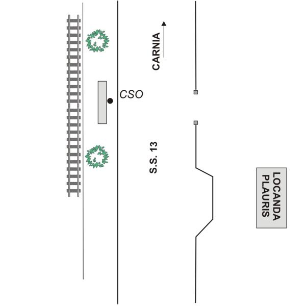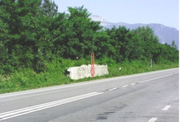 | Contrassegni | [{"simbolo_contrassegno":"B1","materializzazione":"(CSO) – In mezzeria dei resti del muro di un edificio sul lato sinistro della strada, direzione Carnia ."}] |