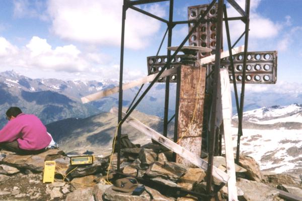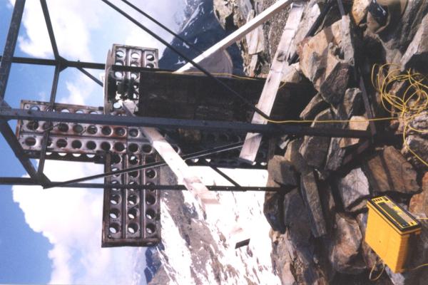 Centrino di tipo "GPS A" incollato al centro del pilastrino in ferro a sezione triangolare.