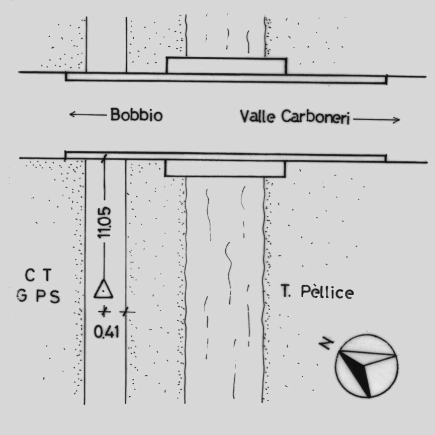 | materializzazione | Centrino del tipo "GPS C" infisso alla sommità di un muro in cemento armato che costituisce l'argine sinistro del Torrente Pellice. |