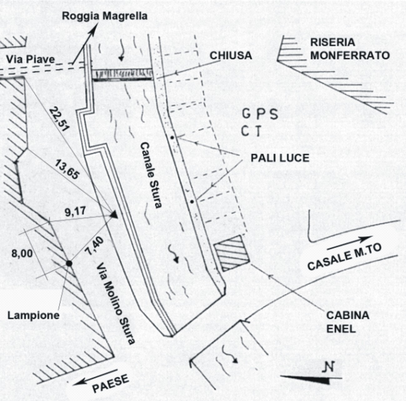 | materializzazione | Centrino di tipo "GPS C" fissato sulla spalletta del canale Stura. |