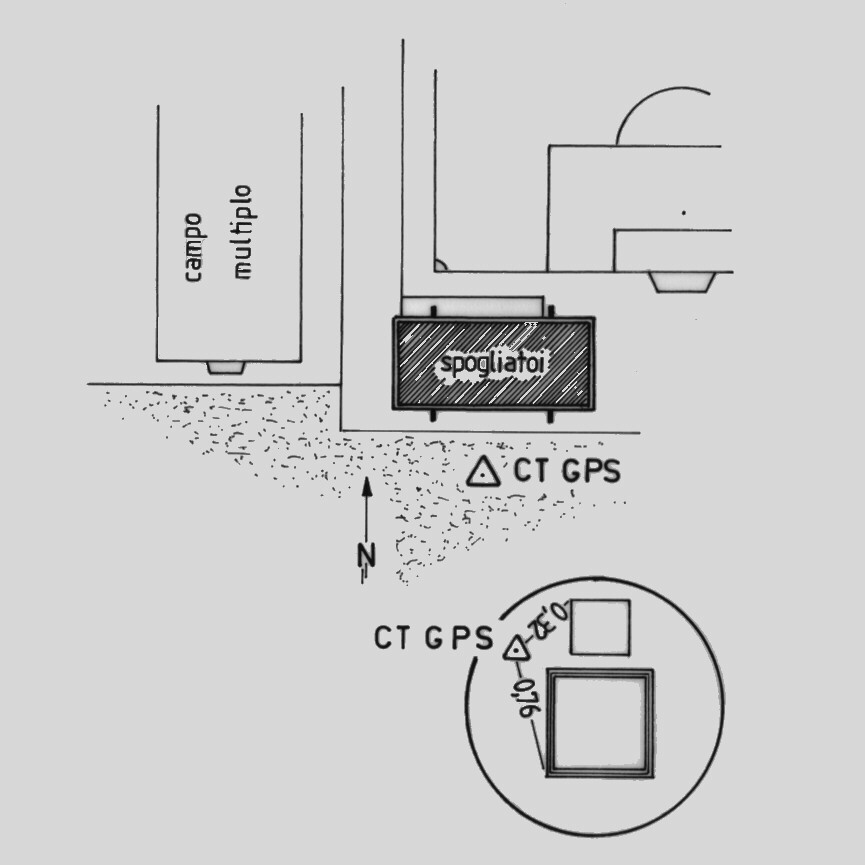 Centrino del tipo "GPS C" infisso sulla soletta in cemento armato a pianta circolare a copertura di un pozzetto idrico esistente nel parcheggio antistante gli spogliatoi degli impianti sportivi.
