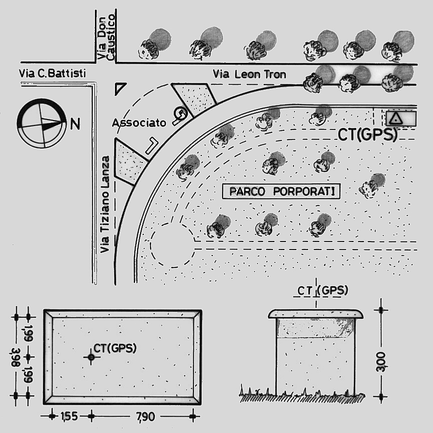 Centrino del tipo "GPS C" infisso alla sommità della soletta di copertura di una cabina ENEL in cemento armato ubicata nell'area sud-ovest del parco omonimo.
