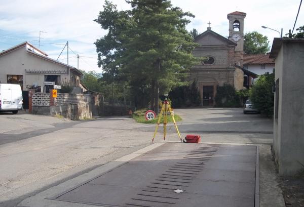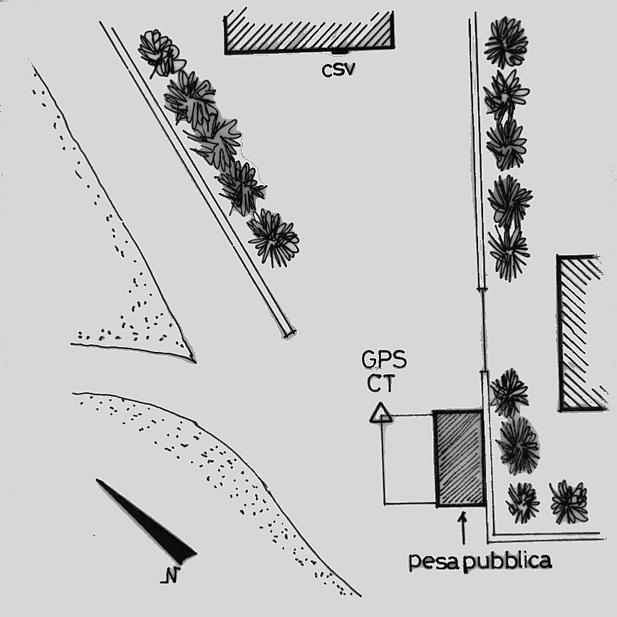Centrino in acciaio inox del tipo "GPS C" infisso nel cordolo in cemento armato della pesa pubblica esistente nella piazza della Chiesa.
