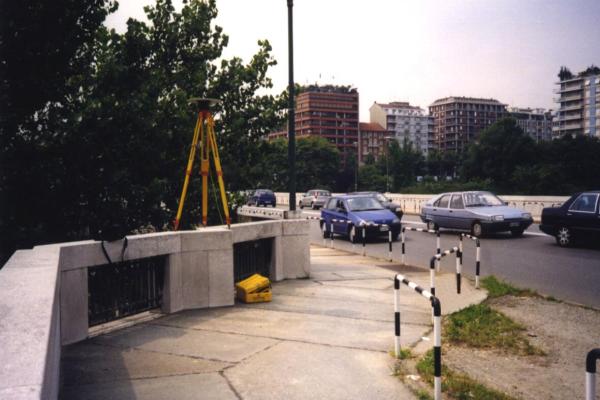 | materializzazione | Centrino in acciaio inox del tipo "GPS C" infisso nella copertina in pietra della spalletta all'imbocco del Ponte delle Molinette, riva destra a monte. |