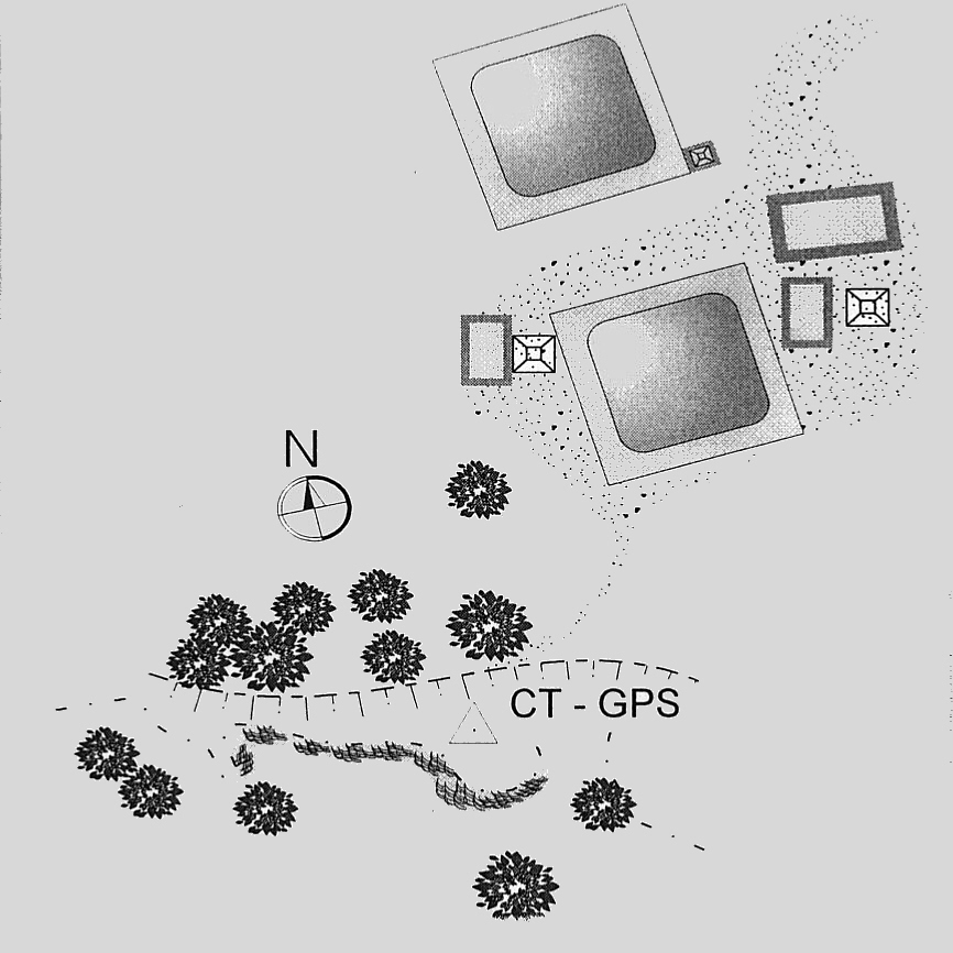 Centrino GPS a centramento forzato infisso nella roccia affiorante esistente a sud-ovest del gruppo di ripetitori televisivi, a circa 22 metri dall'ultimo edificio posto ad ovest, circa 8 metri più basso di quota.