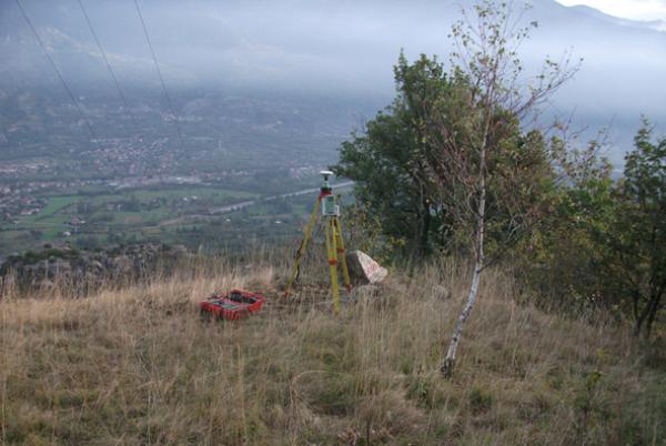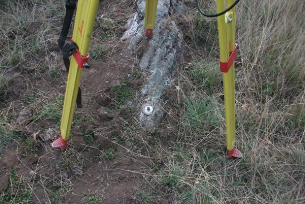 | materializzazione | Centrino GPS a centramento forzato infisso nella roccia affiorante sul lato destro della strada, poco prima di passare sotto alla linea elettrica ad alta tensione (132 KW) dell'ENEL, ed adiacente ad un traliccio. |
