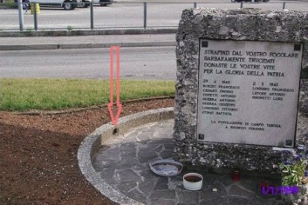 | Contrassegni | [{"simbolo_contrassegno":"B1","materializzazione":"(CSO) – Infisso nella parete interna dell'aiuola del monumento ai caduti per il terremoto del 1976, dal lato verso Gemona ."},{"simbolo_contrassegno":"B4","materializzazione":"(CSO) – GPS – Spigolo sud-ovest della piazzola quasi dirimpettaia al cso ."}] |