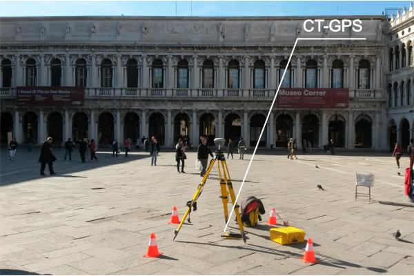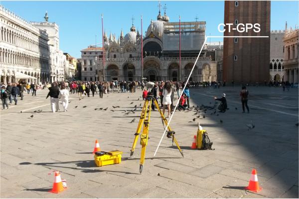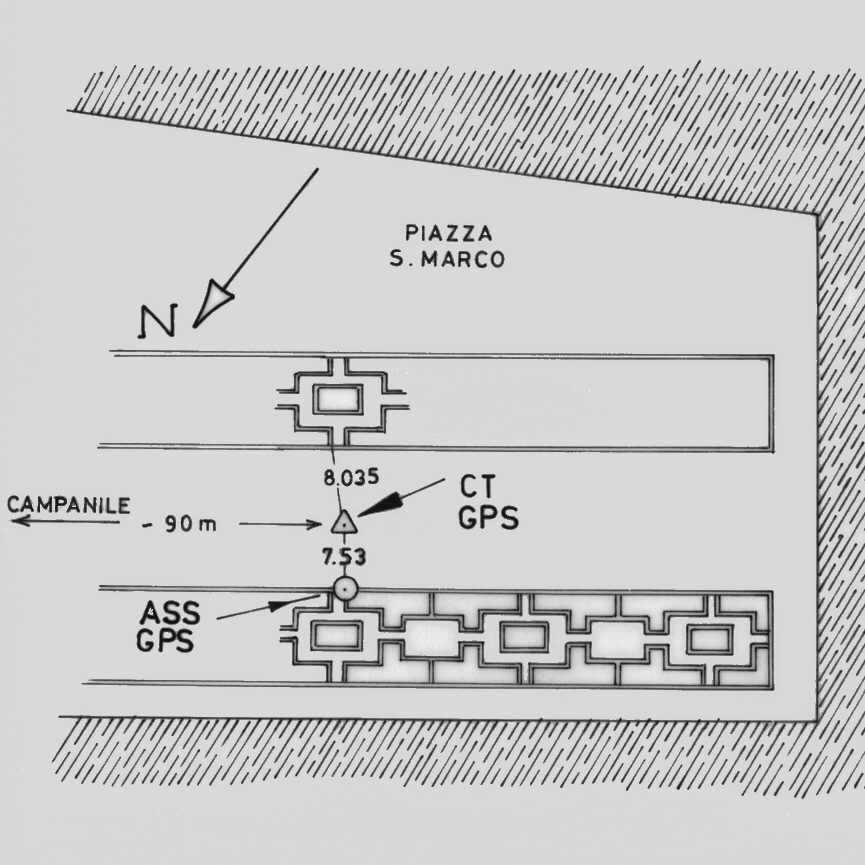Centrino di tipo "GPS C" infisso su di una pietra di pavimentazione di Piazza S.Marco, circa 90 m. a est del Campanile.