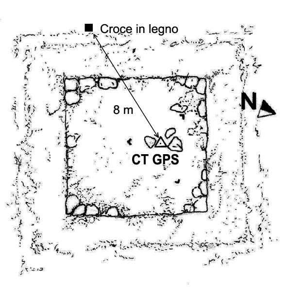 | materializzazione | Centrino di superficie cementato tra i ruderi delle fondazioni di una torre, sita nella parte alta di Monte Cistorello a circa 8 metri Nord-Est di una croce in legno. |