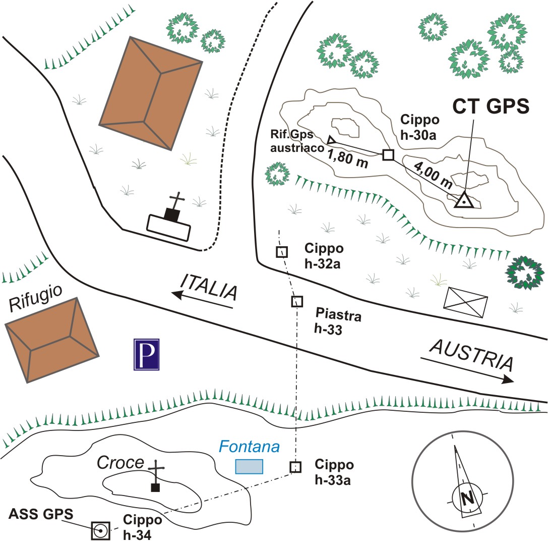 | materializzazione | Centrino metallico austriaco con tappo svitabile infisso a circa 300 m. (10 minuti a piedi) a nord del Passo Stalle, in territorio austriaco, a circa 4 m. dal cippo di confine h-30a che dista a sua volta 1,80 m. circa dal riferimento GPS austriaco che è una incisione su roccia a triangolo. |