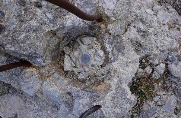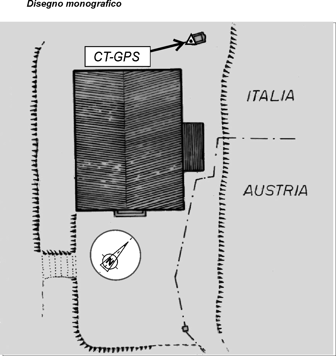 | materializzazione | Centrino di tipo "GPS C" fissato alla base dell'alloggiamento semicircolare dell'asta portabandiera e coincidente con l'asse geometrico della stessa (vertice trigonometrico); il tutto posto a nord dell'ex casermetta della Guardia di Finanza sulla parte più elevata del monte. |