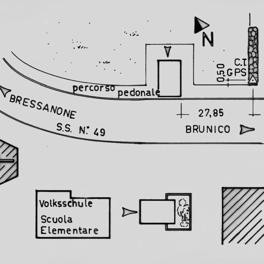 | materializzazione | Centrino di tipo "GPS C" fissato sul muro, di confine in ciottoli cementati, fra due campi ed a m 27,85 dal sottopassaggio pedonale. |