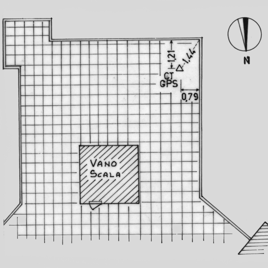 | materializzazione | Centrino di tipo "GPS C" infisso nella pavimentazione della terrazza sovrastante l'ospedale, nei pressi dello spigolo sud-ovest, protetto da tappo in plastica. |