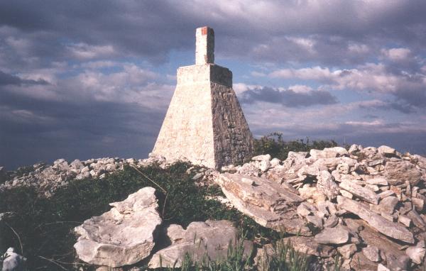 | materializzazione | Centrino di tipo "GPS C" fissato sul centrino IGM di superficie cementato alla sommità del pilastrino in calcestruzzo realizzato sul tronco di piramide in pietrame costruito su Le Murge – Monte Chiancaro. |