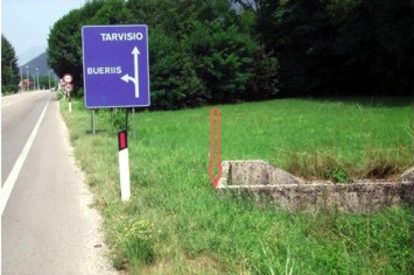 [{"simbolo_contrassegno":"B1","materializzazione":"(CSO) – Infisso nella parete della concimaia rivolta verso la strada del lato verso Udine ."}]