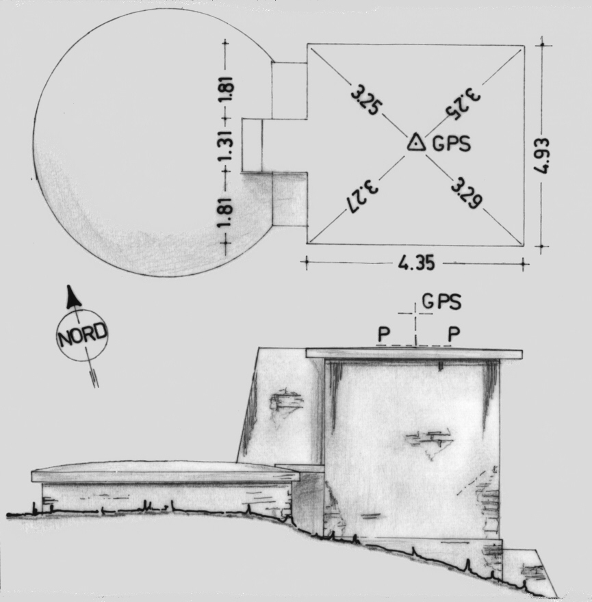 Centrino del tipo "GPS C" fissato in corrispondenza del centro geometrico della soletta in cemento armato a copertura del casotto del deposito idrico dell'acquedotto dell'E.A.A.P..