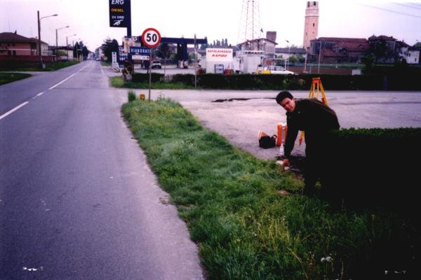 | materializzazione | Foro praticato sul centrino di superficie in blocchetto di calcestruzzo cementato fra il ciglio ovest della strada e il cimitero di Biandrate; nei pressi dello spigolo nord – est del parcheggio, all'altezza del civico 34. |