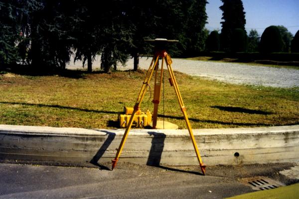 | materializzazione | Centrino in acciaio inox del tipo "GPS C" infisso nella sommità del muretto in calcestruzzo di recinzione al parcheggio del cimitero. |
