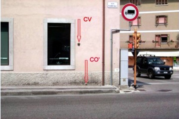 [{"simbolo_contrassegno":"B1","materializzazione":"(CSO) – Bullone infisso in prossimit\u00e0 dello spigolo destro della facciata."},{"simbolo_contrassegno":"P3","materializzazione":"CSO') – Pozzetto posto presso l'estremit\u00e0 nord-est, a sinistra del cancello dell'ingresso carraio della trattoria Boschetti."},{"simbolo_contrassegno":"V1","materializzazione":"(CSV) – Sulla facciata suddetta, in corrispondenza del CSO'."}]