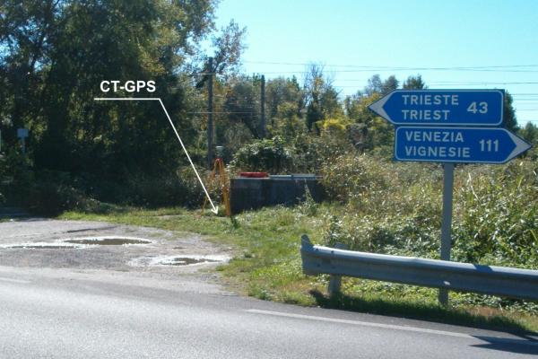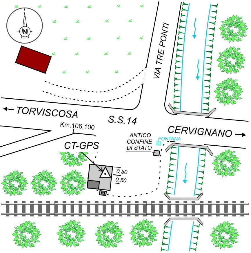 Centrino anonimo infisso nella piattaforma in cemento alla base del casotto dell'acquedotto in località Tre Ponti, al km 106,200 della S.S.14.