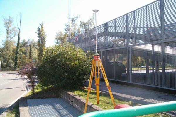 | materializzazione | Centrino di tipo "GPS C" fissato nel cordolo in cemento armato delimitante l'area grigliata, a nord-est, adibita al ricambio dell'aria del parcheggio sotterraneo. |