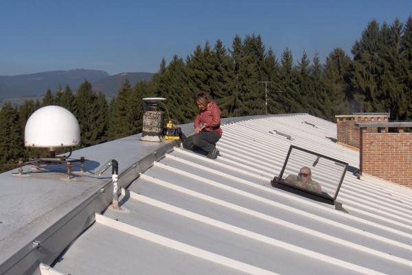 Centrino di tipo "GPS C" cementato in asse al vecchio pilastrino posto sul muro perimetrale ovest del fabbricato adibito ad ufficio dell'Osservatorio Astrofisico.