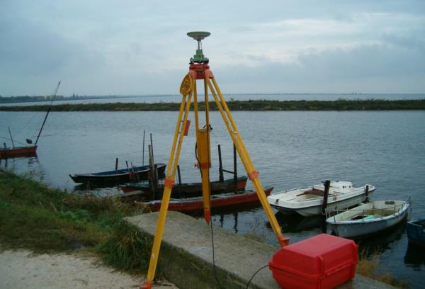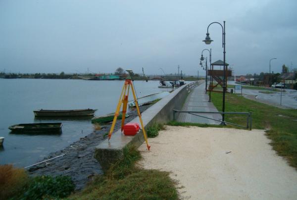 Centrino in acciaio inox del tipo "GPS C" infisso sulla sommità della barriera frangi flutti in cemento armato, in prossimità della testata e del camminamento lungo l'argine.