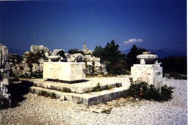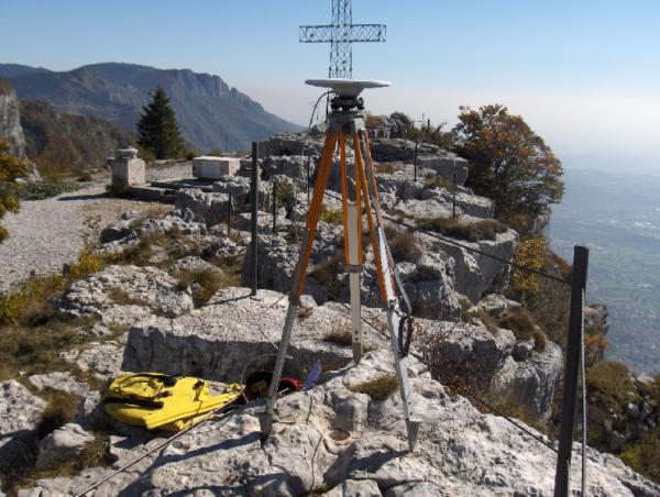 Centrino di superficie del trigonometrico IGM 036261 ubicato sulla parte più alta del monte, sopra uno sperone roccioso, nei pressi di un altare in pietra costruito dal Genio Militare nel 1951.