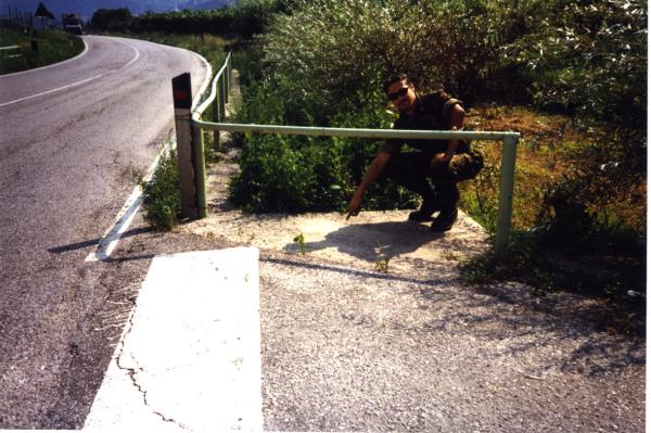 | materializzazione | Centrino del tipo "GPS C" fissato sulla copertura in cemento del canale che costeggia la S.S. 12 in località Case Sdruzzina. |