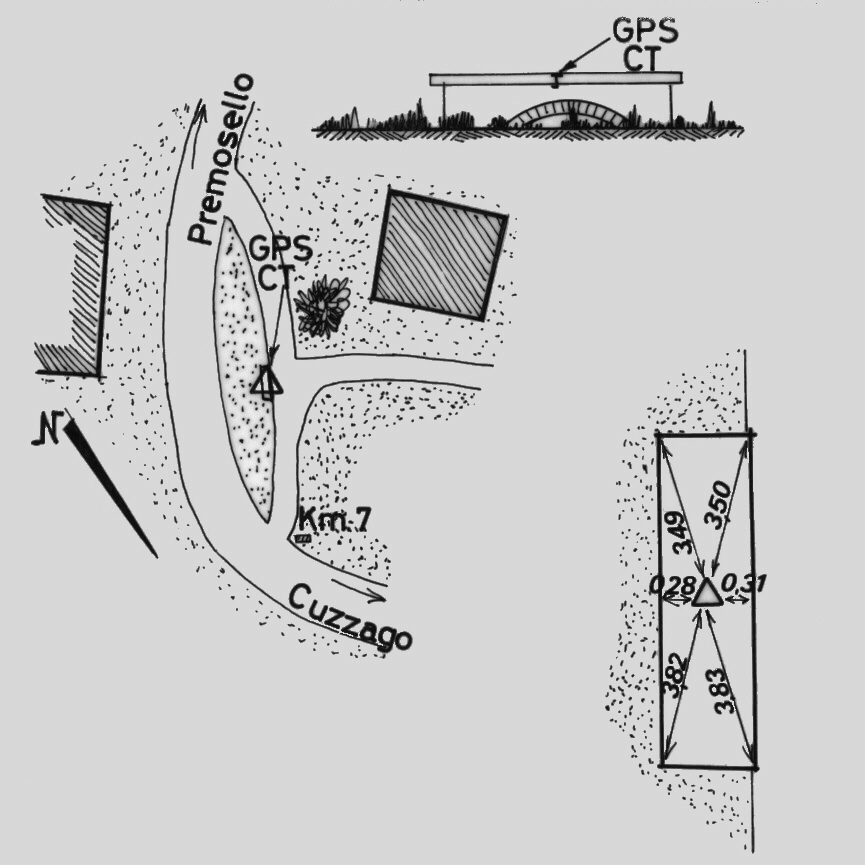Centrino di tipo "GPS C" fissato sul muretto in cemento in asse alla chiave della volta sottostante.