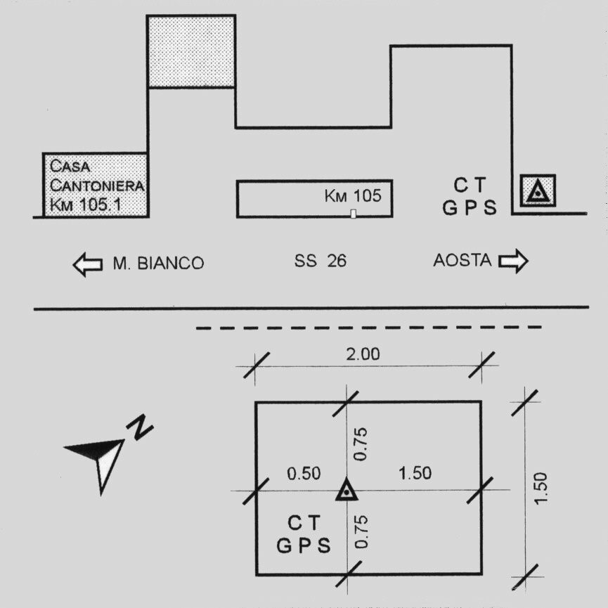 | materializzazione | Centrino in acciaio inox del tipo "GPS C" infisso nella sommità di un basamento in cemento. |