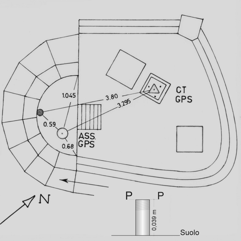 | materializzazione | Asta filettata di acciaio innossidabile (materializzazione RG – reti geodetiche) dell'Università di Udine (1989) collocato dentro al pozzetto centrale (con coperchio in ferro apribile) sito sul fortino dove c'è la bandiera. |