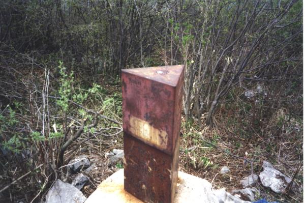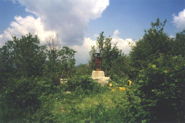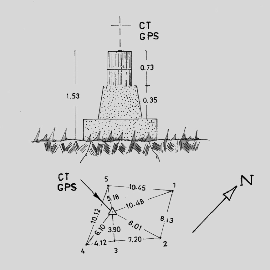 Asse geometrico del pilastrino in ferro a sezione triangolare, installato su basamento in muratura. Cinque riferimenti come da pianta.