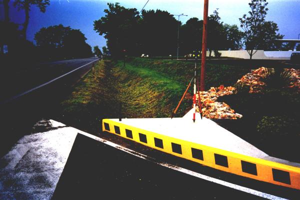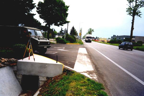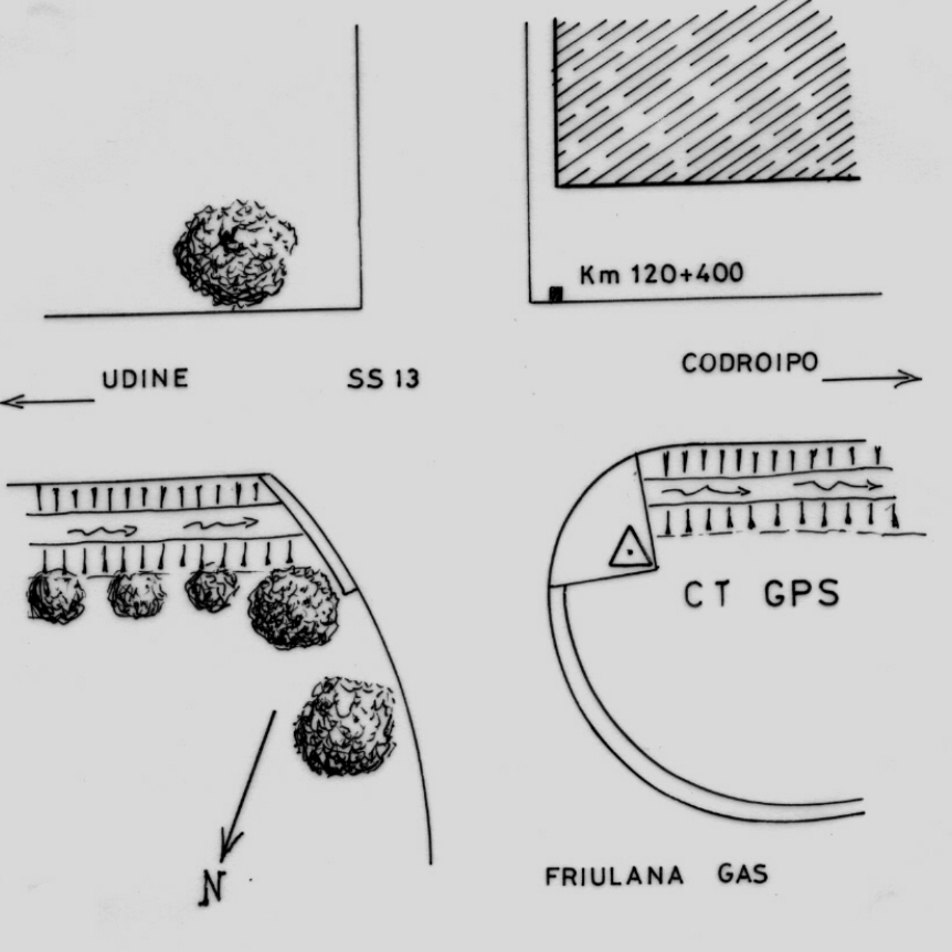| materializzazione | Centrino in acciaio Inox del tipo "universale" infisso sulla sommità della soletta in cemento armato della chiavica esistente sul margine nord della S.S.13 al km 120+400, all'imbocco dello stabilimento della "Friulana Gas". |