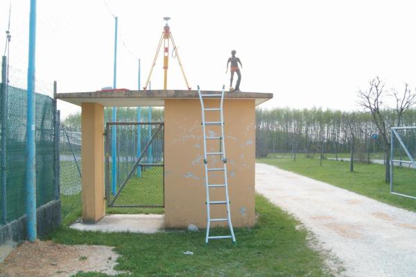 | materializzazione | Centrino di tipo "GPS C" fissato al centro della soletta di copertura del casotto in cemento armato adibito a biglietteria del campo sportivo comunale di Maniago Libero posto nella periferia sud – ovest del paese. |