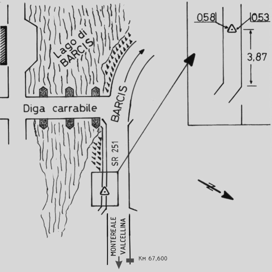 | materializzazione | Centrino di tipo "GPS C", applicato sul passaggio pedonale del ponte prima della diga di Barcis. |