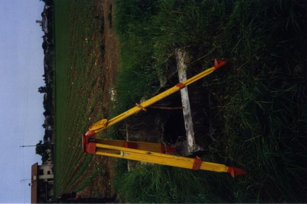 Centrino in acciaio Inox del tipo "GPS da livellazione" infisso nel cordolo perimetrale in cemento armato del pozzetto d'irrigazione ubicato lungo il margine sinistro della strada che da Cosa conduce a Pozzo.